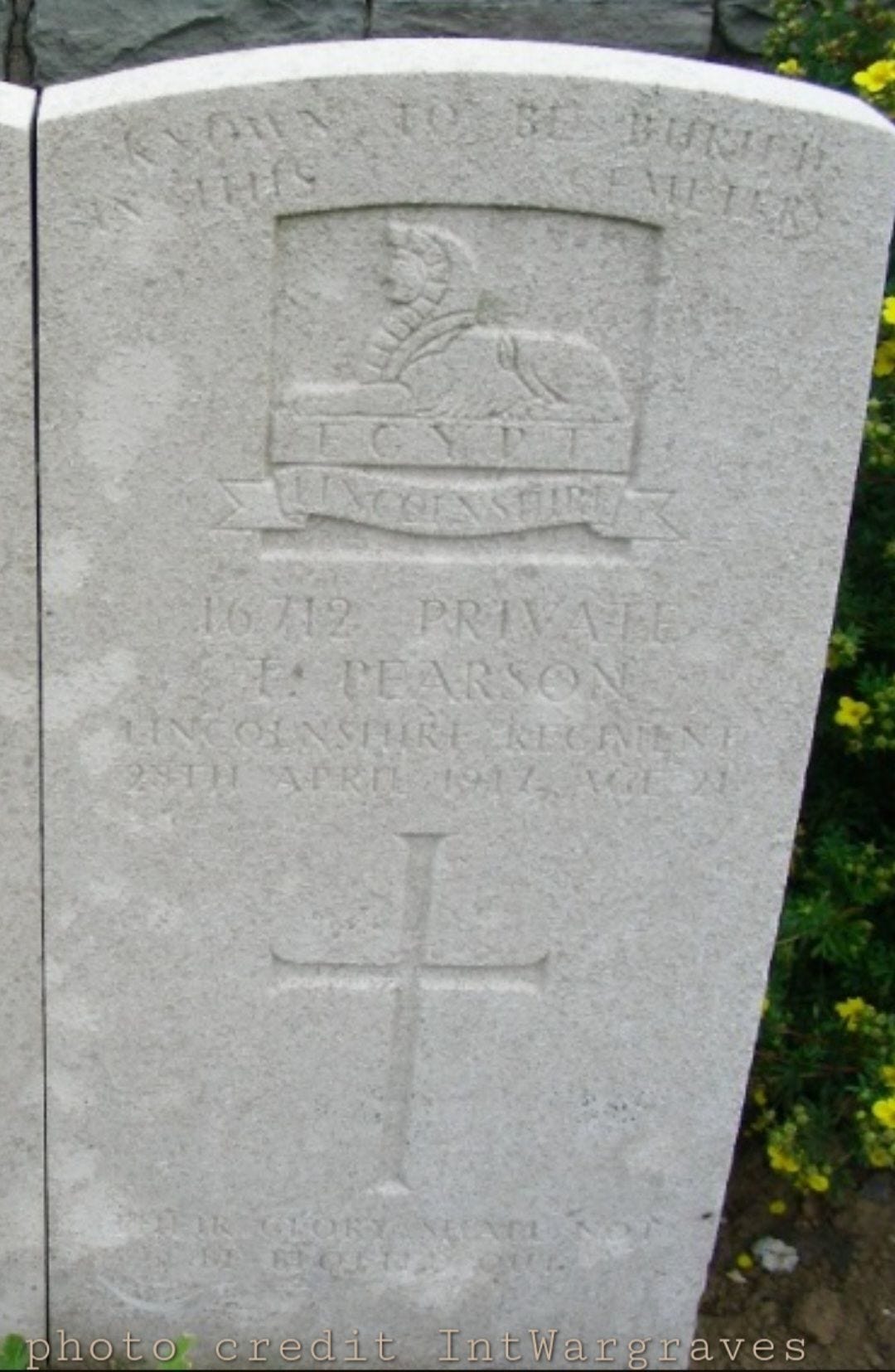 On the same day, in the same newspaper, the family placed a notice in the Deaths column. “PEARSON – In loving memory of Thomas Pearson, eldest son of Mr. and Mrs. J. H. Pearson, Deeping St Nicholas, aged 21. Killed in action April 23rd 1917. – From his sorrowing Father, Mother and Brothers.”